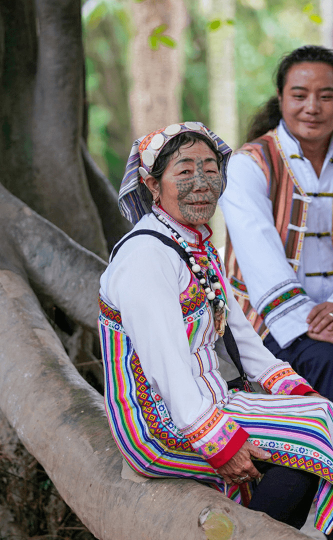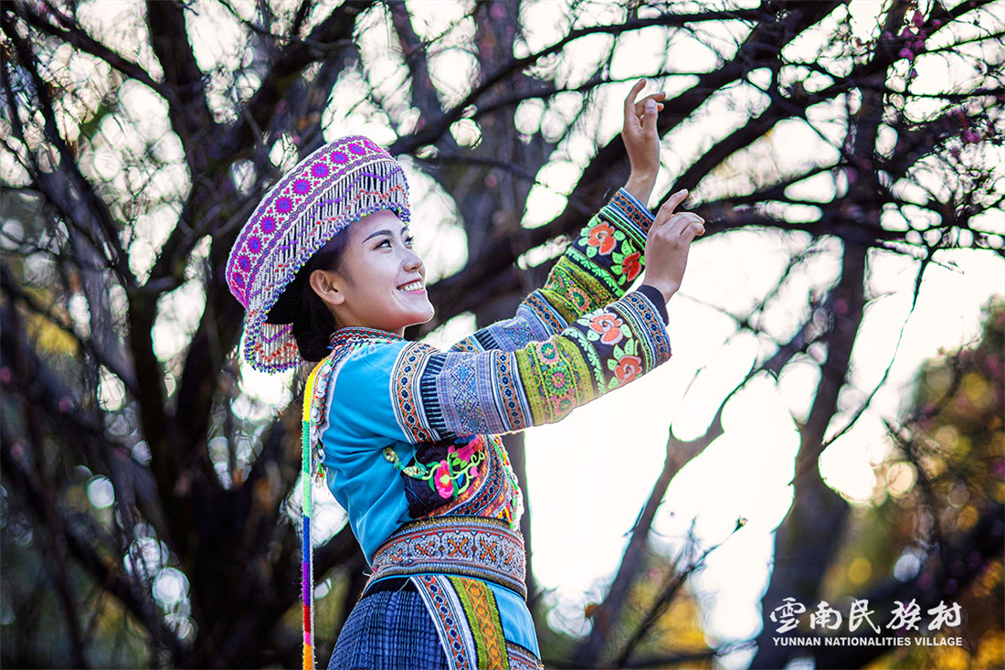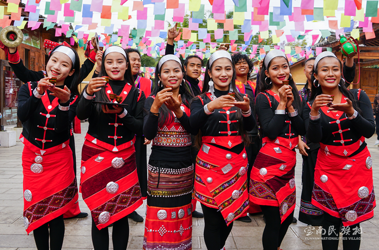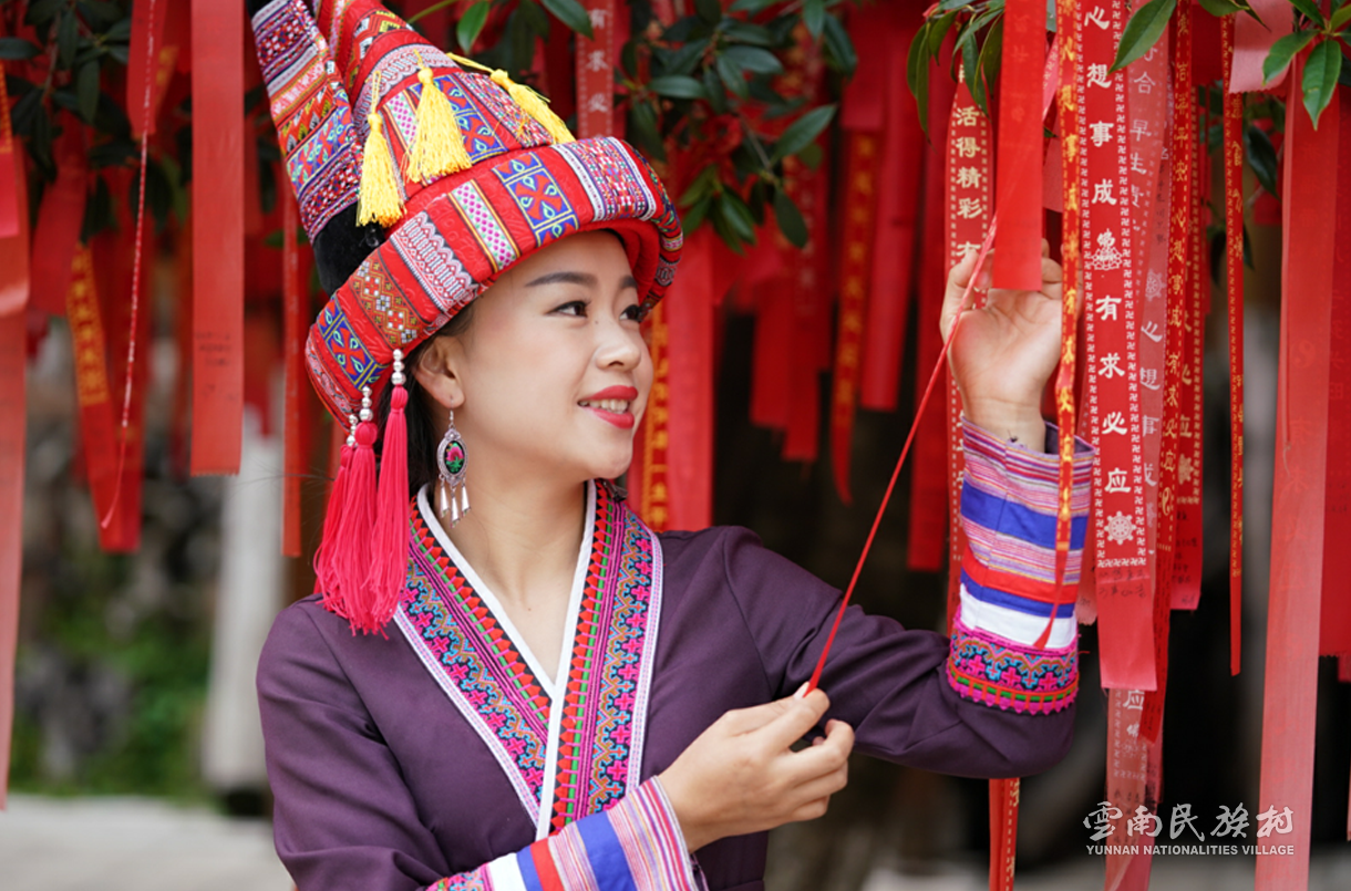 彝族在云南境內(nèi)約471萬人,是省內(nèi)人口最多、分布最廣的少數(shù)民族,主要聚居在金沙江、元江流域和哀牢山、無量山腹地。彝族是一個(gè)能歌善舞的民族,民間打歌、跳樂之風(fēng)盛行,大三弦、跌腳舞久負(fù)盛名?;鸢压?jié)是彝族最具特色的民族節(jié)日。彝族村占地50余畝,三虎浮雕墻與虎頭內(nèi)祖師形象表現(xiàn)了彝族虎鷹文化。太陽歷廣場圖騰柱上有太陽、虎、火和八卦圖形象,周圍環(huán)繞著10個(gè)朝向不同的月球造型,外圓周有12生肖石雕。依山而建的“...